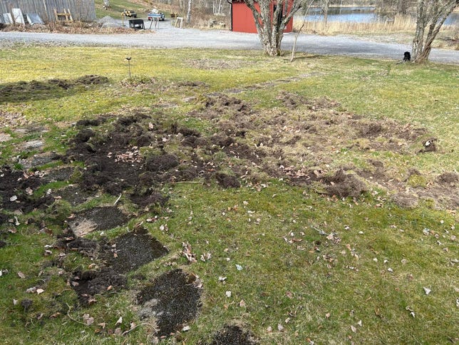Förra året hade vi en invasion av vildsvin härjade på vår områden. Knappast någon fastighetsägare kunde undgå besök av dem.